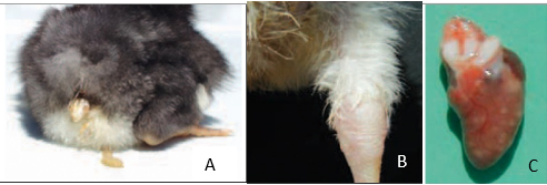 - Symptoms: Anorexia, diarrhea, anus covered by white stools, stunted, underdeveloped hair, accumulation, atrophic crest, pale.