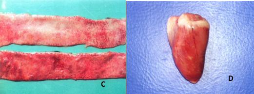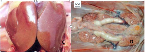 + Damage to the liver and heart differentiated from infections caused by other Salmonella and Campylobacteriosis, Colibacillosis, Omphalitis.