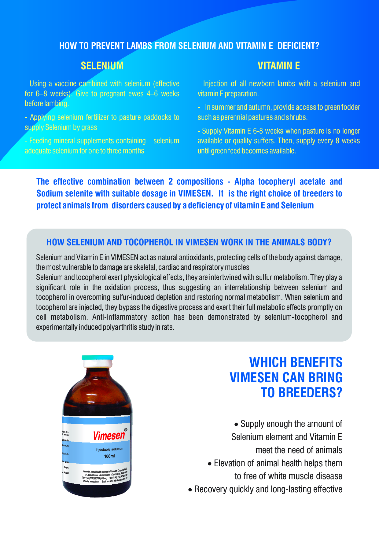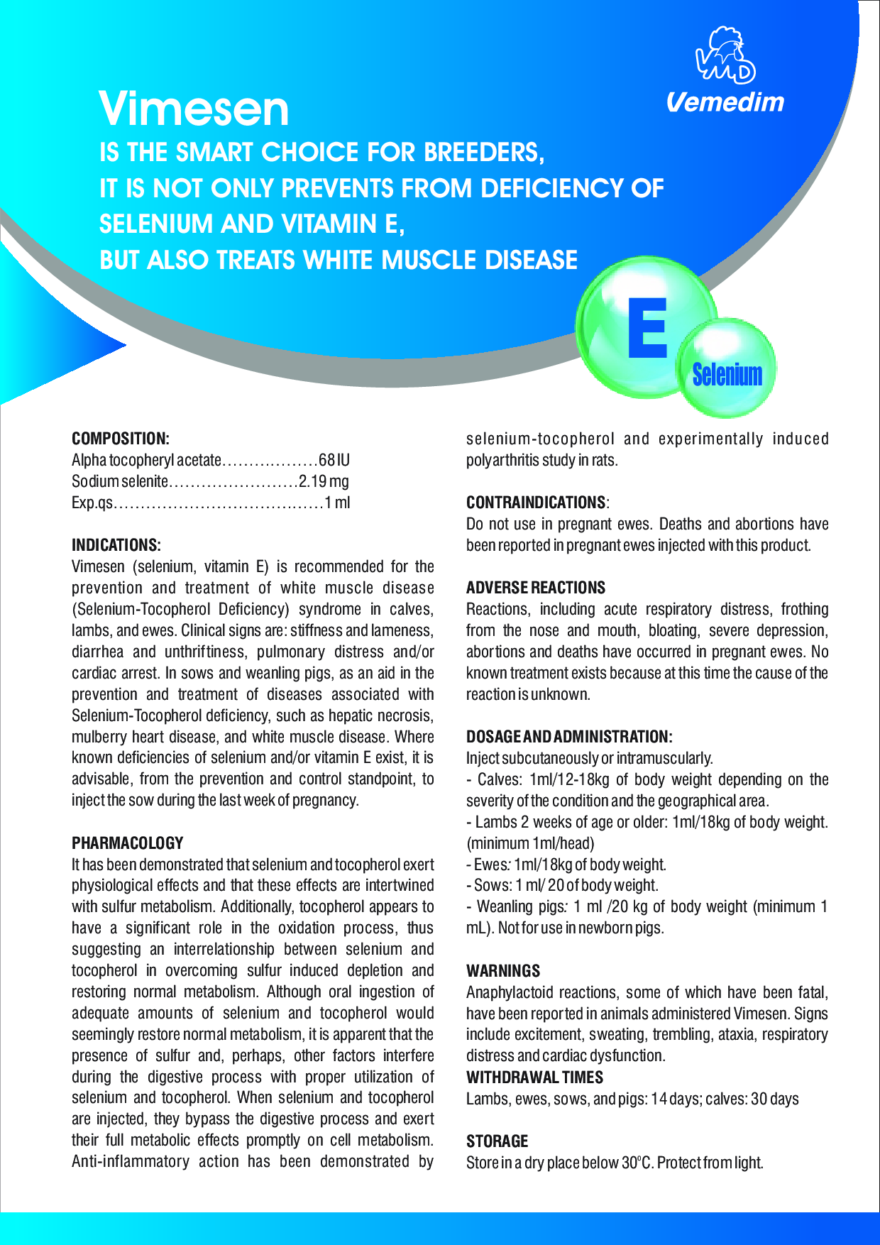 Prevention and treatment of disorders caused by a deficiency of Vitamin E and Selenium