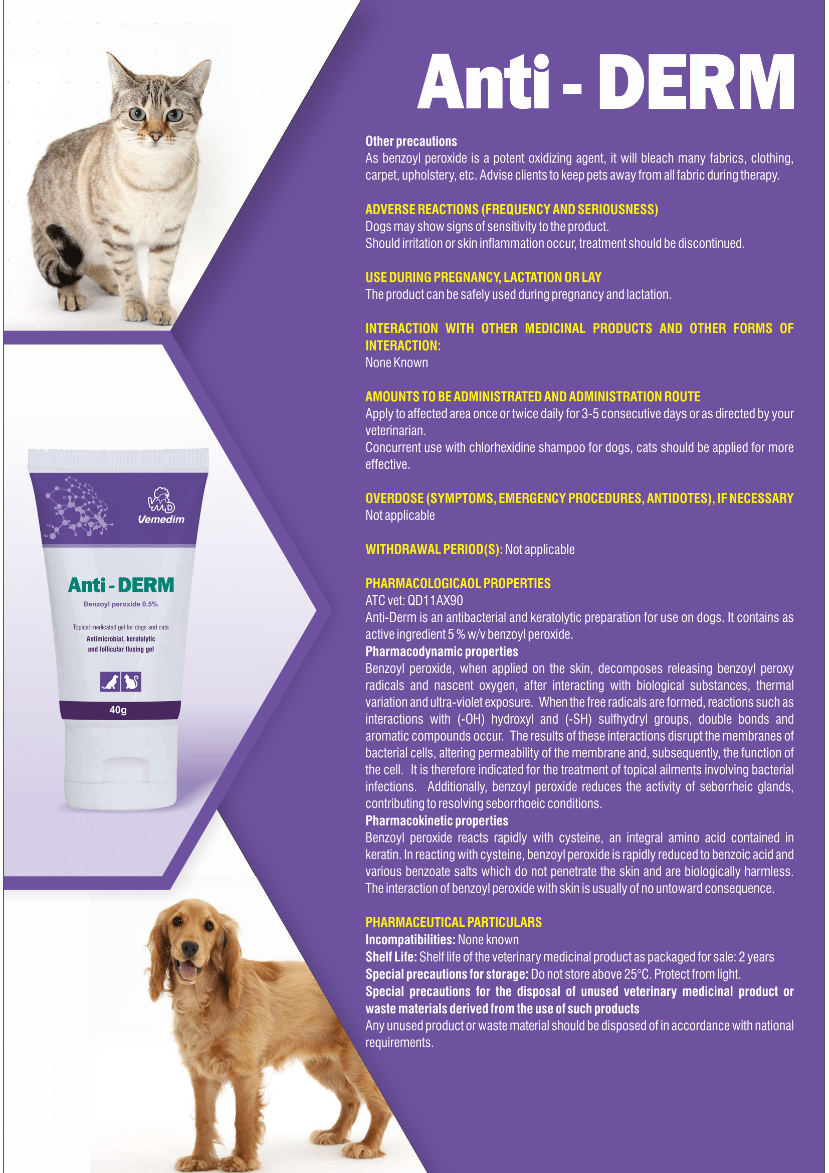 Medicated shampoo with chlorhexidine digluconate. Anti itching and deodorizing. Treatment of dermatitis.