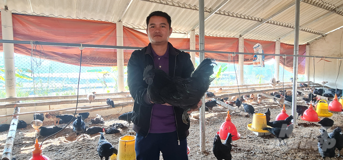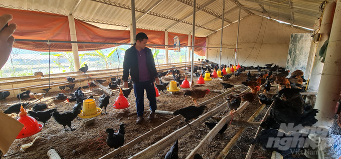 Nhận thấy tiềm năng từ giống gà này, anh Quàng Văn Ún đã quyết định đầu tư nuôi gà Mông đen trên quy mô lớn, thay vì chỉ nuôi nhỏ lẻ như các hộ dân trong bản. Trên diện tích gần 1.000m² tại bản Co Luống, anh đã xây dựng chuồng trại kiên cố, thoáng mát với hệ thống sưởi ấm bằng đèn điện, sàn lót trấu và mùn cưa giúp giữ vệ sinh. Chuồng nuôi được thiết kế khoa học, vừa đảm bảo an toàn cho gà vừa giúp giảm thiểu ô nhiễm môi trường xung quanh.