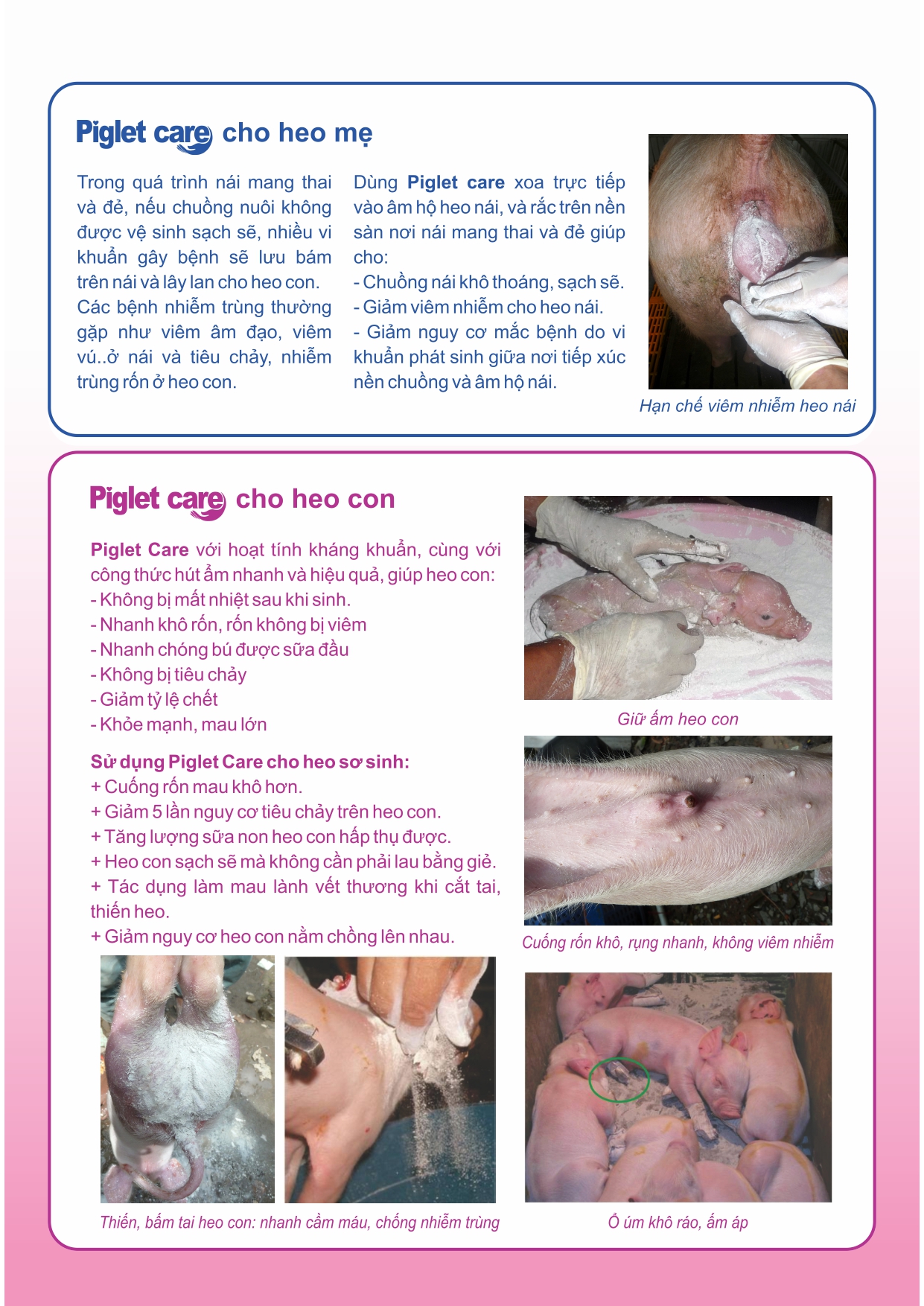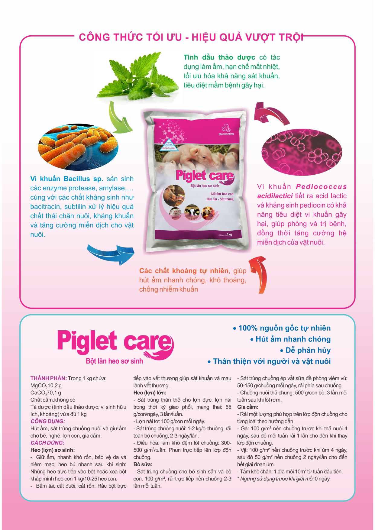 Vật nuôi sơ sinh rất dễ mất nhiệt, nhiễm khuẩn và mắc bệnh sau sinh – đó là lý do Piglet Care được ra đời như “lá chắn sinh học” giúp bảo vệ ngay từ những giờ đầu tiên.