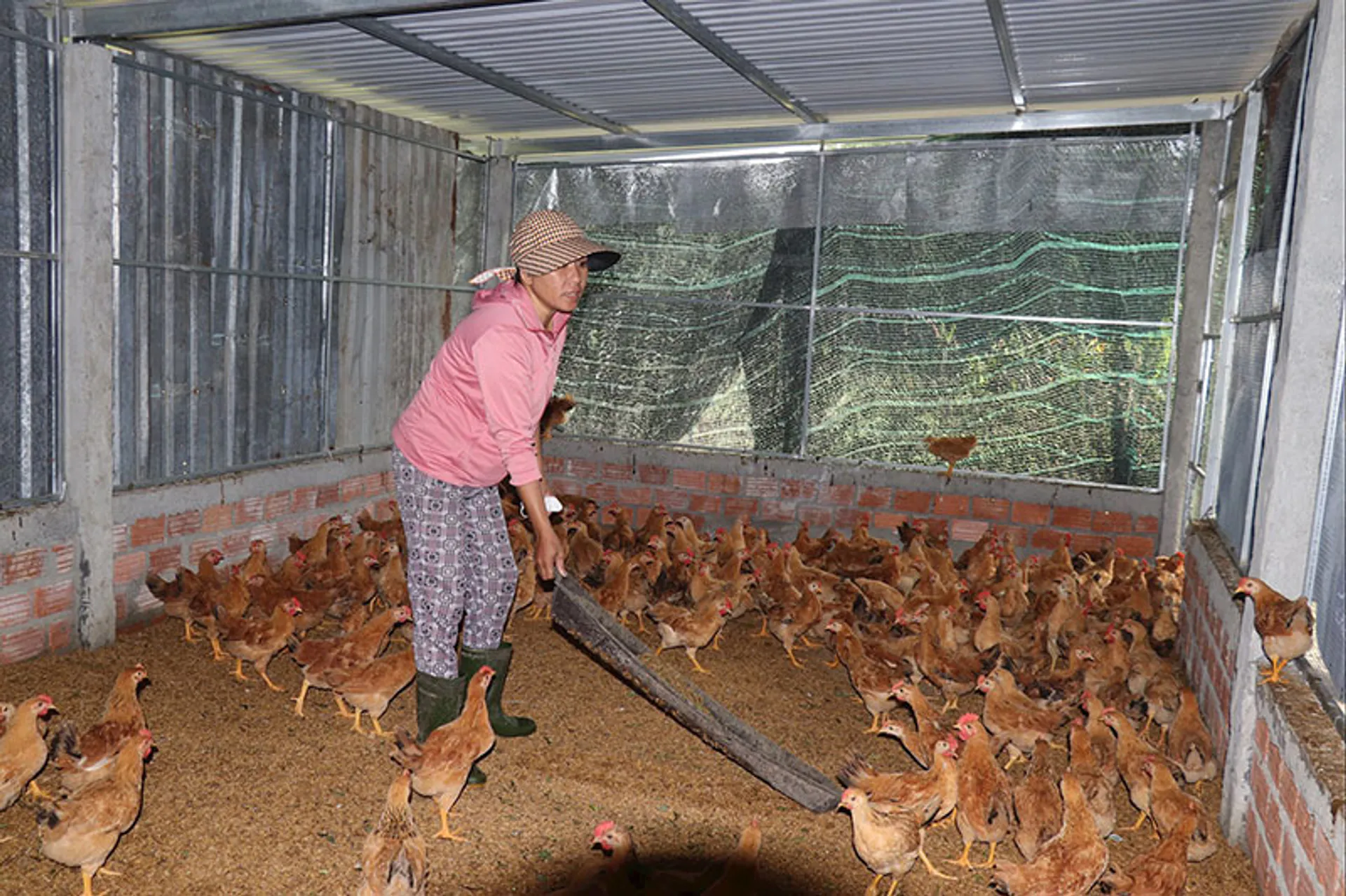 “Những ngày mưa ẩm, tôi luôn cho gà vào chuồng để giữ ấm và hạn chế mầm bệnh. Đệm lót sinh học cũng được cải tạo thường xuyên để đảm bảo môi trường nuôi luôn khô thoáng và sạch sẽ,” bà chia sẻ.