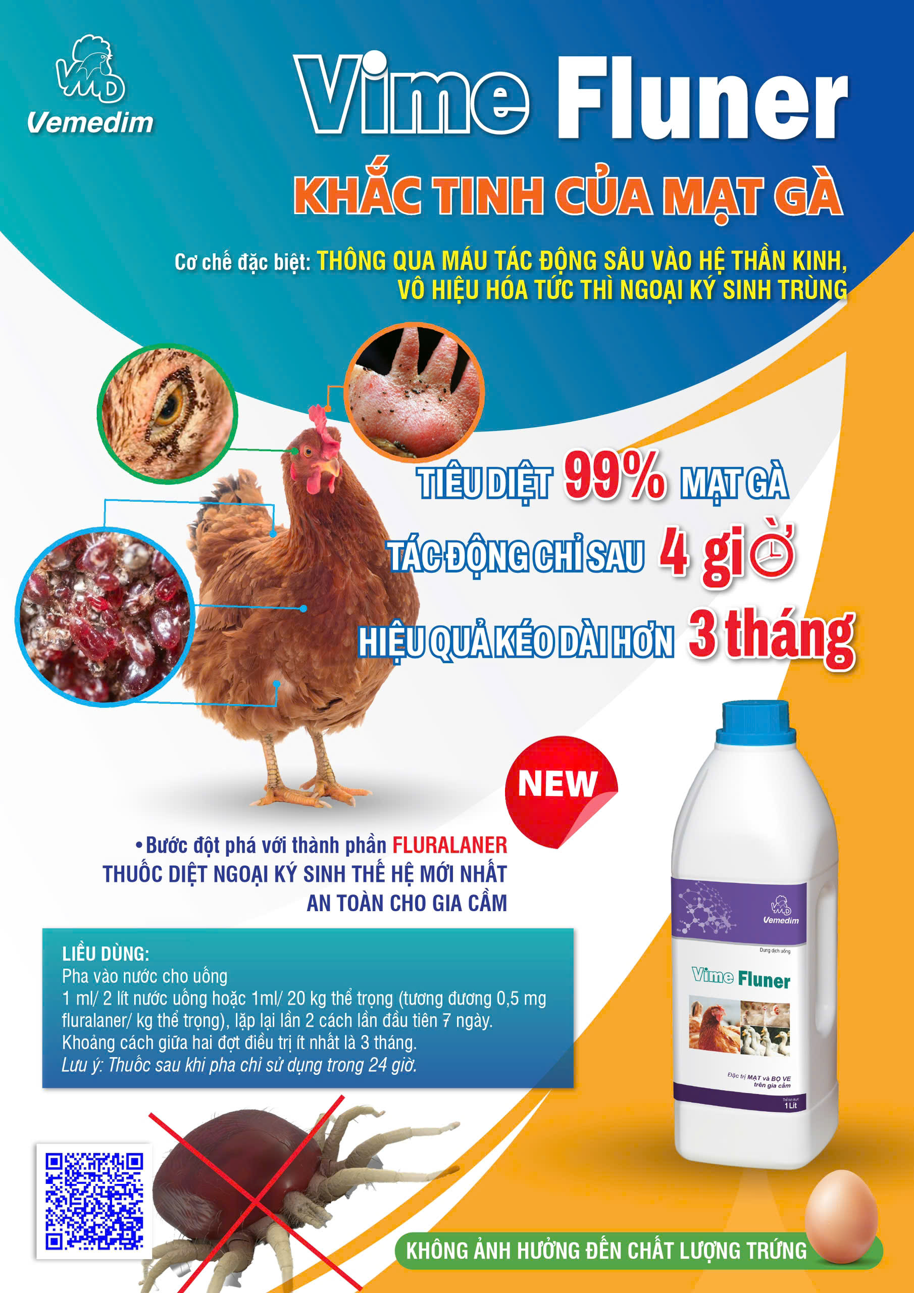 Vime Fluner - Phòng và trị mạt (Dermanyssus gallinae), bọ, ve (Ornithonyssus sylviarum) trên gà.
