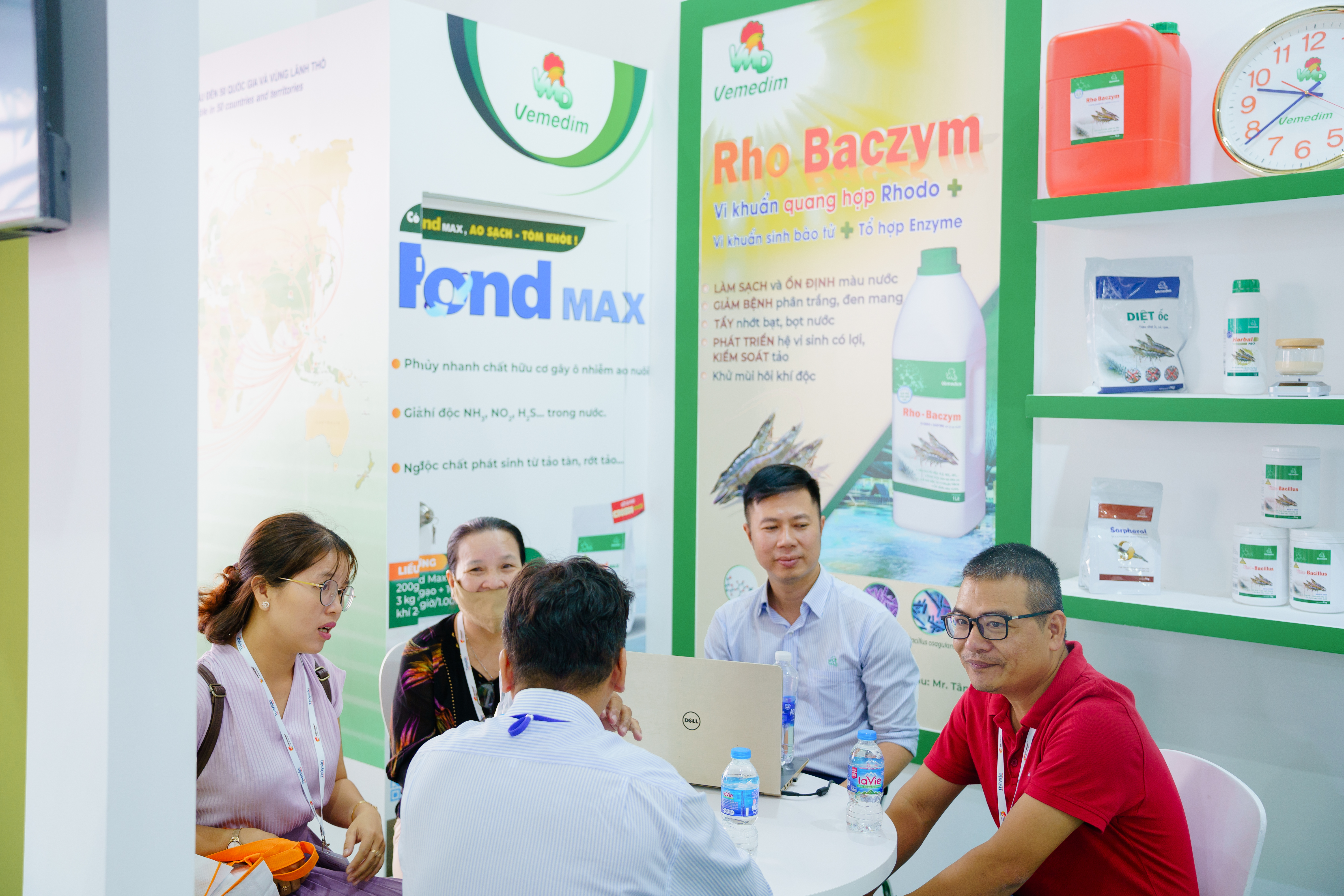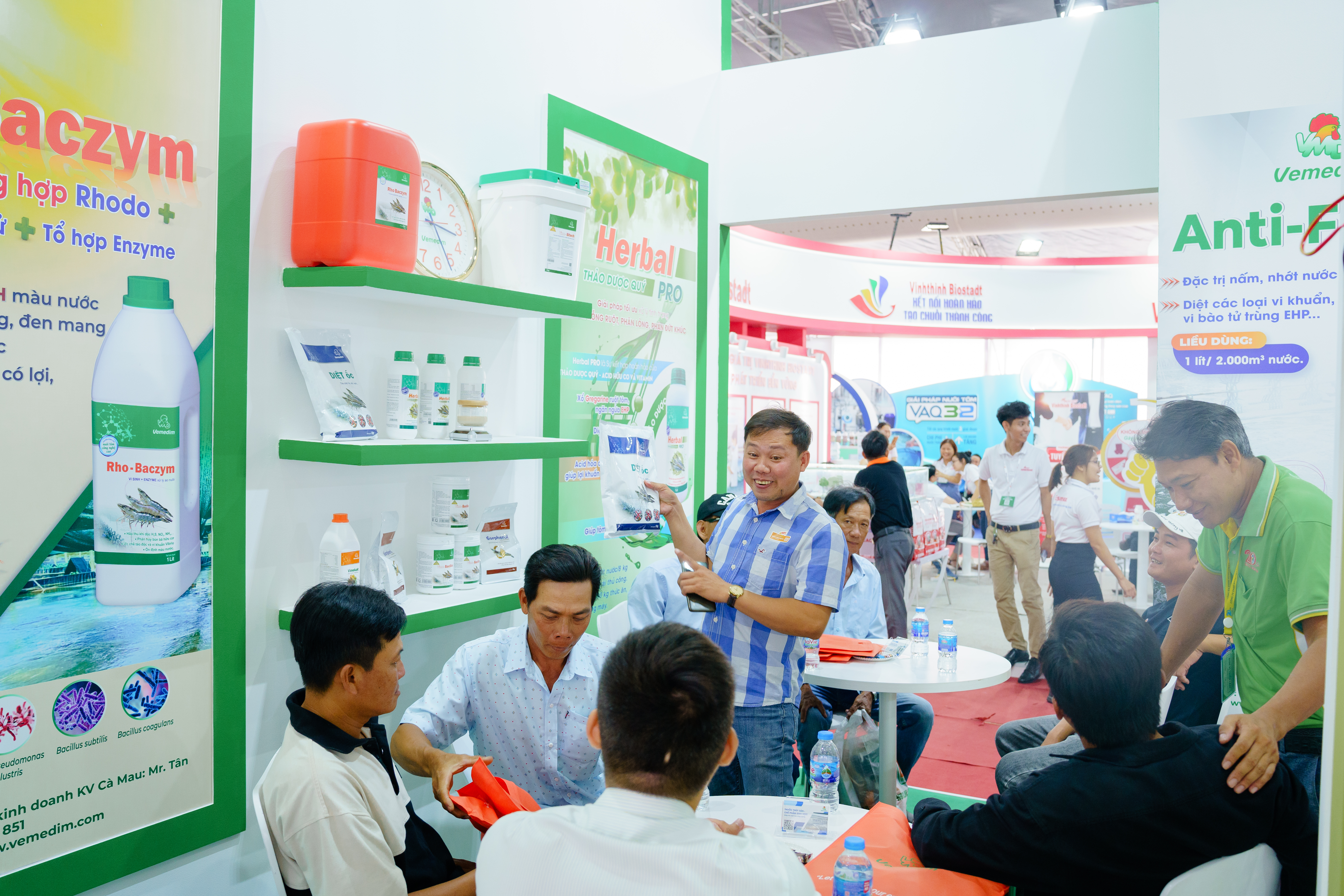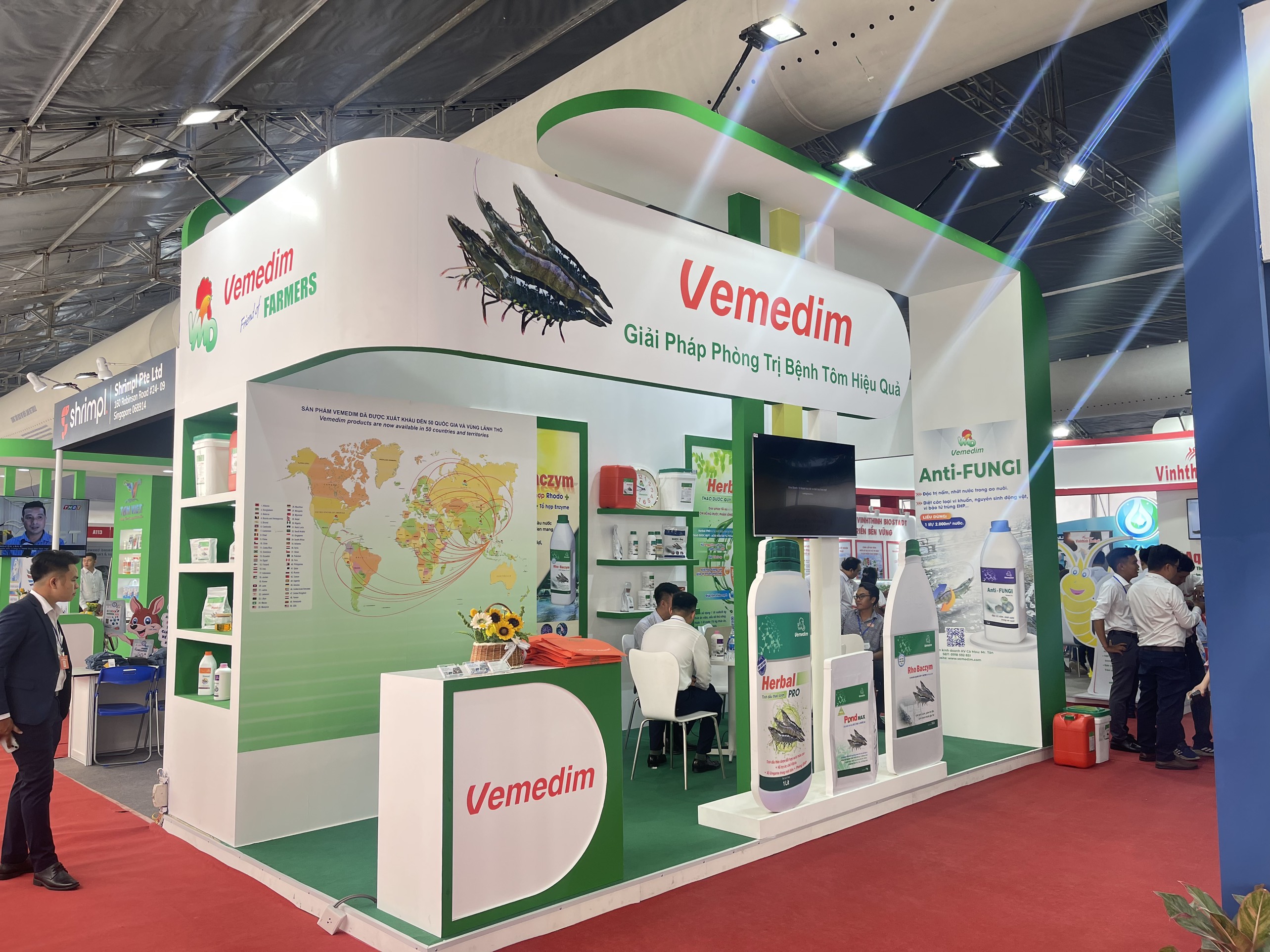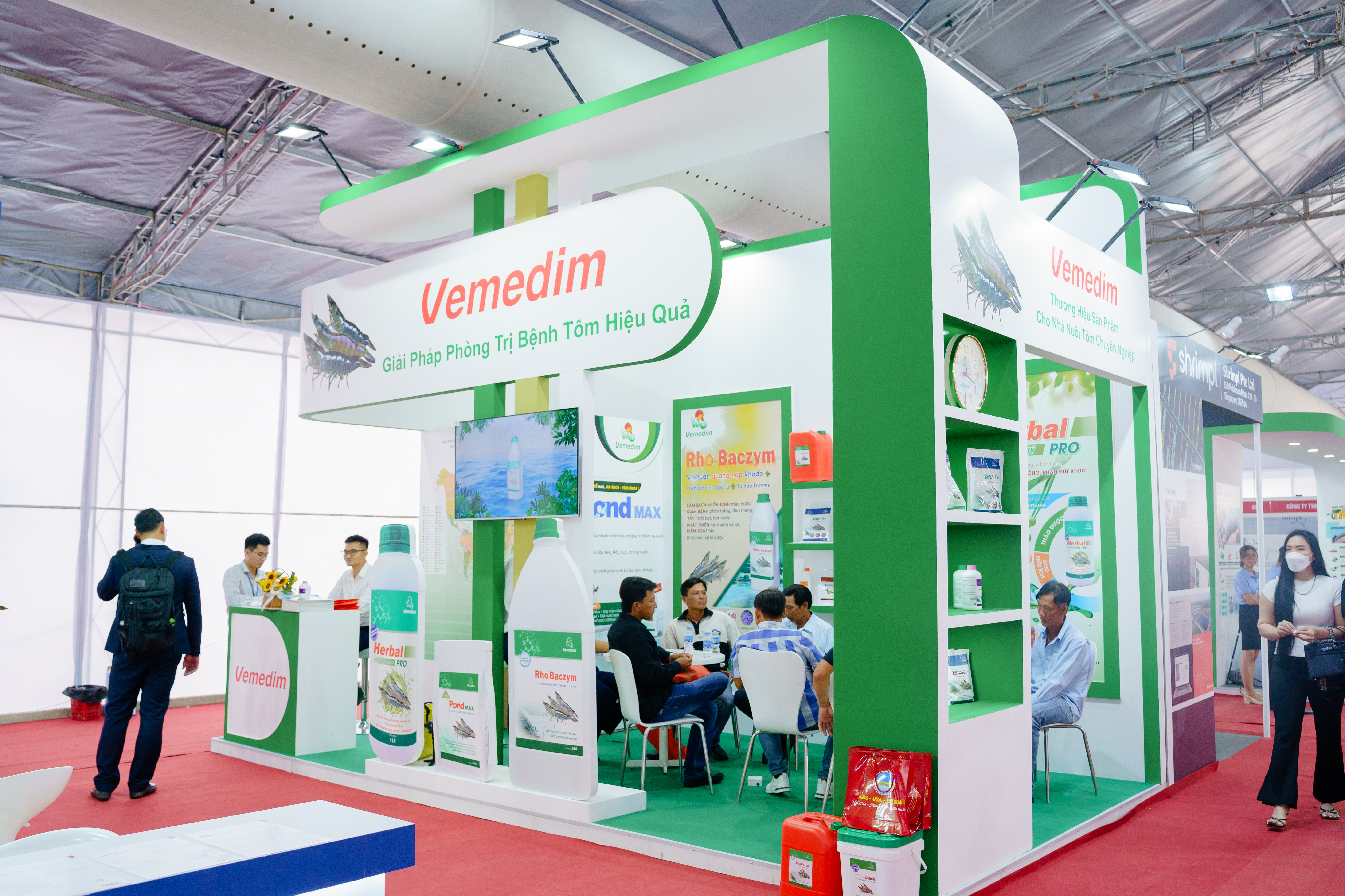 Vemedim, đơn vị đứng đầu về nghiên cứu và phát triển trong ngành thuốc thủy sản, đã tạo ra sự chú ý lớn khi trưng bày các sản phẩm và giải pháp tiên tiến của mình tại gian hàng của mình tại triển lãm Vietshrimp 2024. Với các sản phẩm chất lượng cao như Rho Baczym, Khoáng Tạt, Anti Fungi, Diệt Ốc, Pond max, Herbal pro,… và các giải pháp đột phá trong việc chăm sóc và bảo vệ sức khỏe con tôm, Vemedim đã chứng minh được vị thế của mình là một đối tác đáng tin cậy và uy tín trong ngành công nghiệp tôm Việt Nam.
