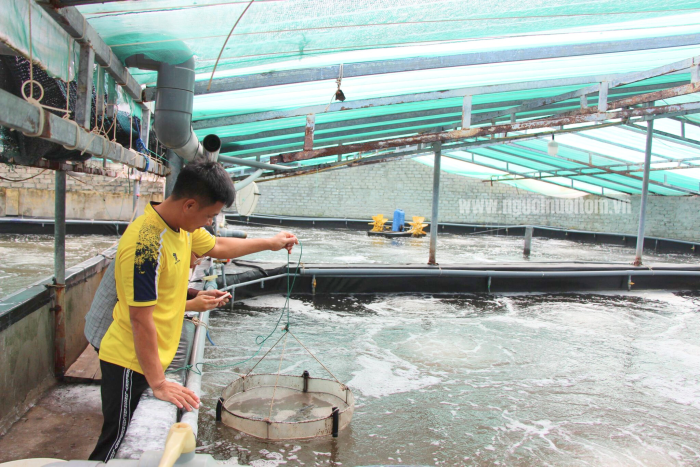 Ông Nguyễn Cường ở xã Diễn Trung, Diễn Châu, cũng chia sẻ kinh nghiệm của mình trong việc sử dụng lưới lam chống nắng để giảm tác động của ánh sáng mặt trời và hạn chế sự phát triển của tảo trong ao nuôi. Nhờ việc áp dụng công nghệ nuôi tôm tiên tiến trên toàn bộ 5 ha ao đầm, ông Cường đã đạt được kết quả tốt hơn trong việc nuôi trồng thủy sản.