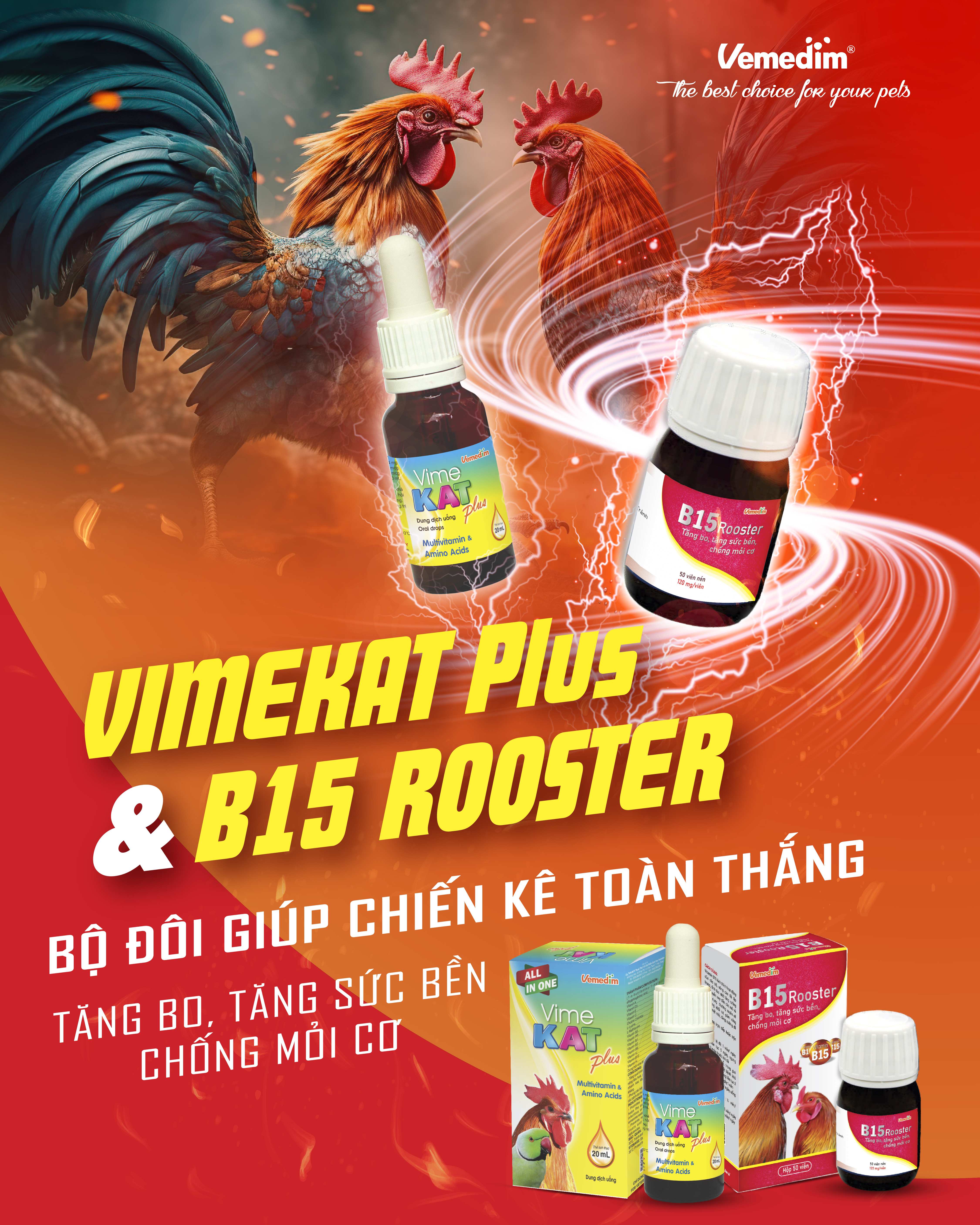 - Với hơn 30 năm kinh nghiệm trong ngành thuốc cho gà đá, chúng tôi tự hào giới thiệu Bộ Đôi Combo sản phẩm 𝐕𝐢𝐦𝐞𝐤𝐚𝐭 𝐏𝐥𝐮𝐬 và 𝐁𝟏𝟓 𝐑𝐨𝐨𝐬𝐭𝐞𝐫 từ Vemedim - giải pháp giúp chiến kê TOÀN THẮNG !