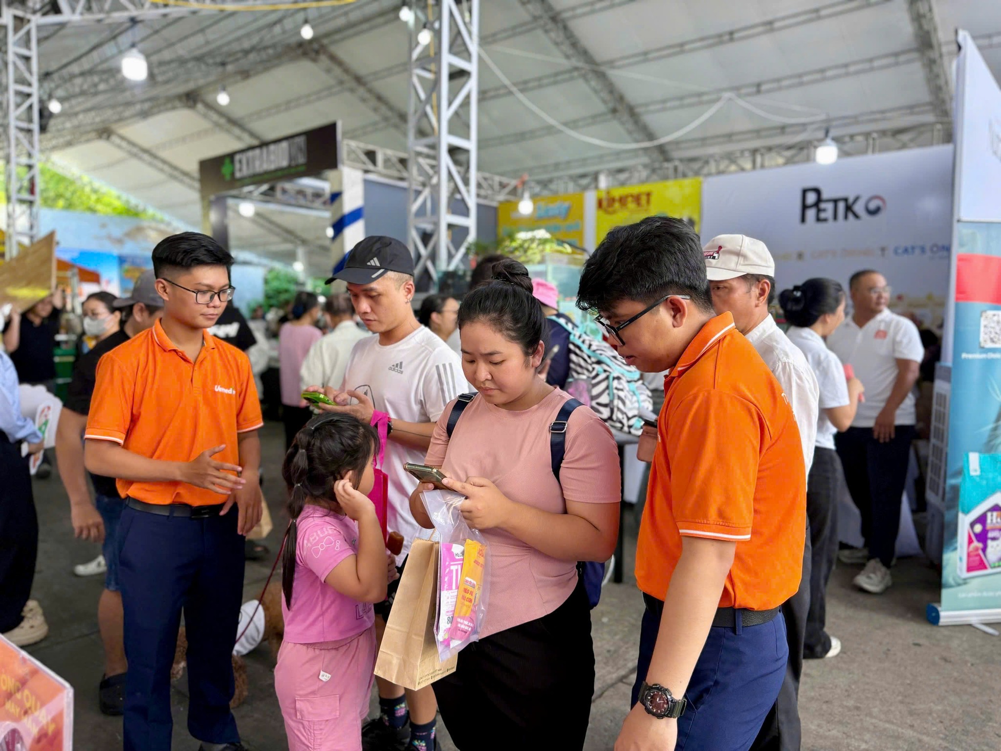 Gian hàng đã thu hút hàng trăm lượt khách ghé thăm, trải nghiệm dịch vụ và tư vấn về các sản phẩm chăm sóc thú cưng của Vemedim.