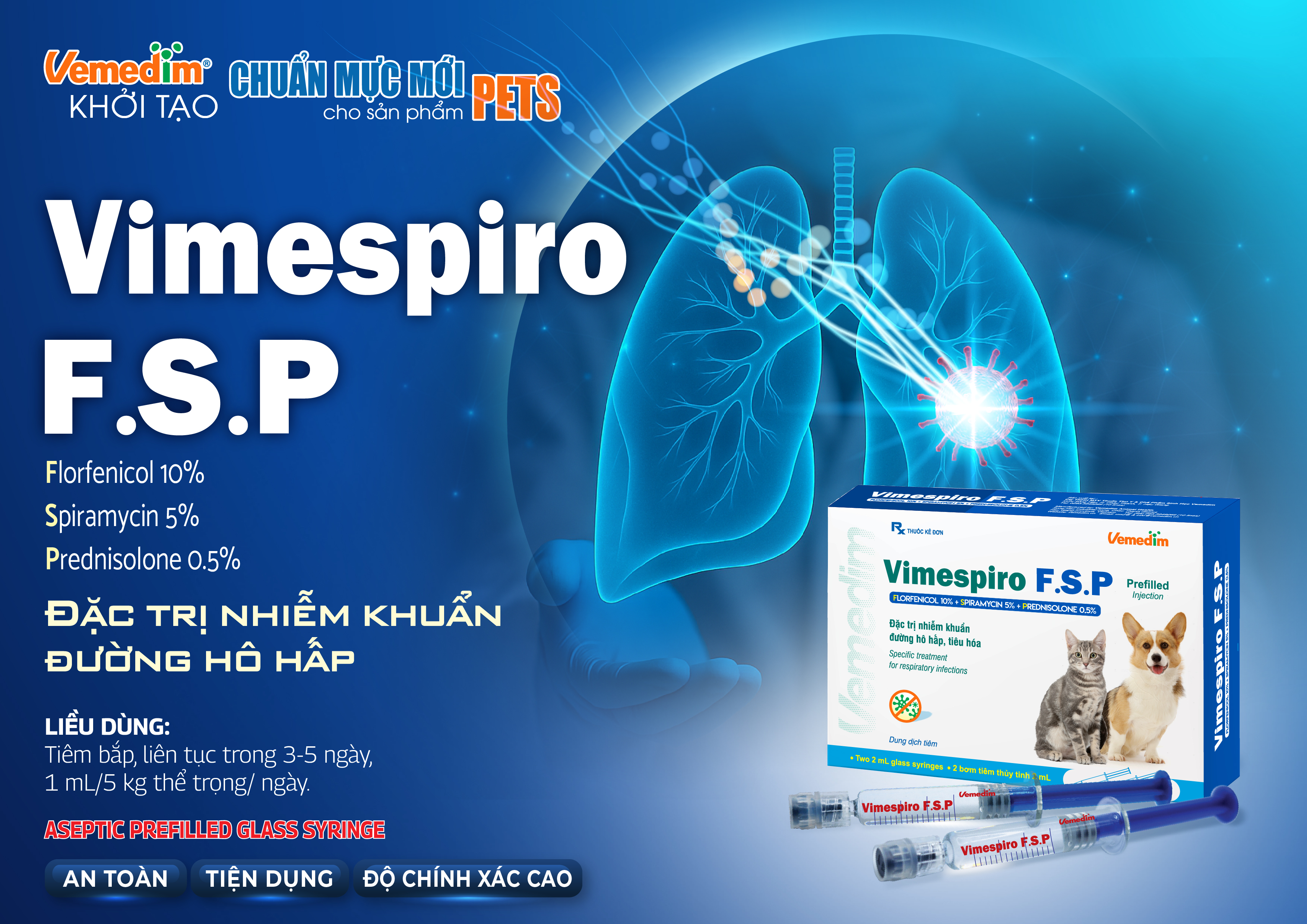 Vimespiro F.S.P – Công thức phối hợp mạnh mẽ giúp khống chế nhanh các bệnh hô hấp do vi khuẩn: