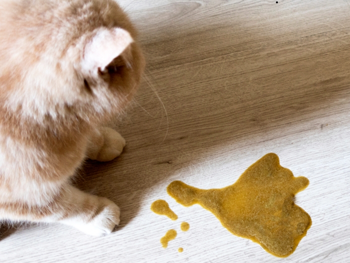 - Giai đoạn giữa (sau 24-48 giờ): Mèo bắt đầu nôn ra dịch vàng hoặc bọt trắng, sau đó là tiêu chảy cấp, phân có mùi tanh hôi, lẫn máu hoặc dịch nhầy, mất nước nghiêm trọng, da khô, mắt trũng sâu, mũi nứt nẻ.