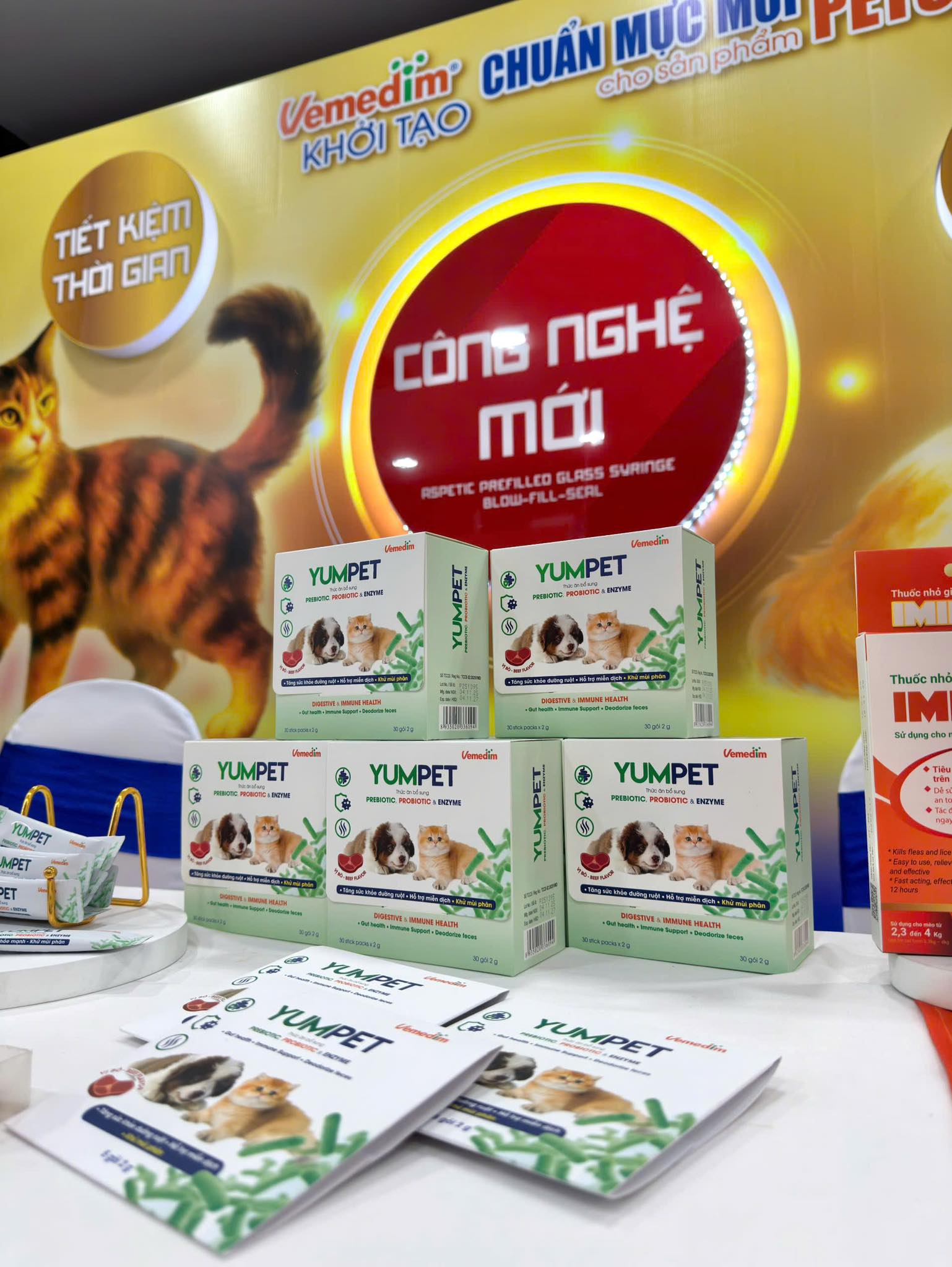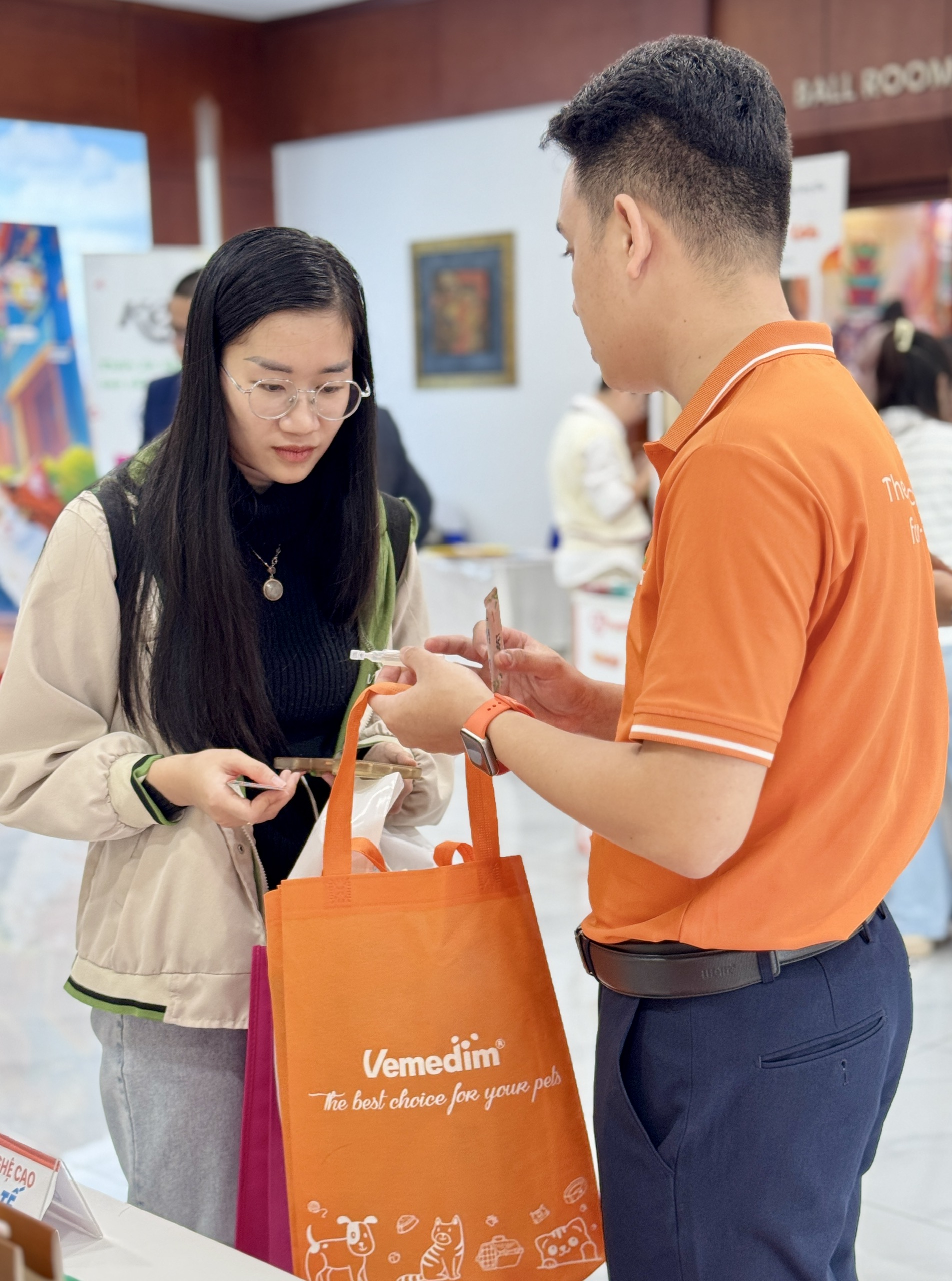 Khách tham quan có cơ hội khám phá nhanh loạt sản phẩm công nghệ cao mà Vemedim mang đến sự kiện, bao gồm ống uống tiện lợi, thuốc tiêm nạp sẵn hiện đại và các giải pháp chăm sóc thú cưng được ứng dụng rộng rãi.
