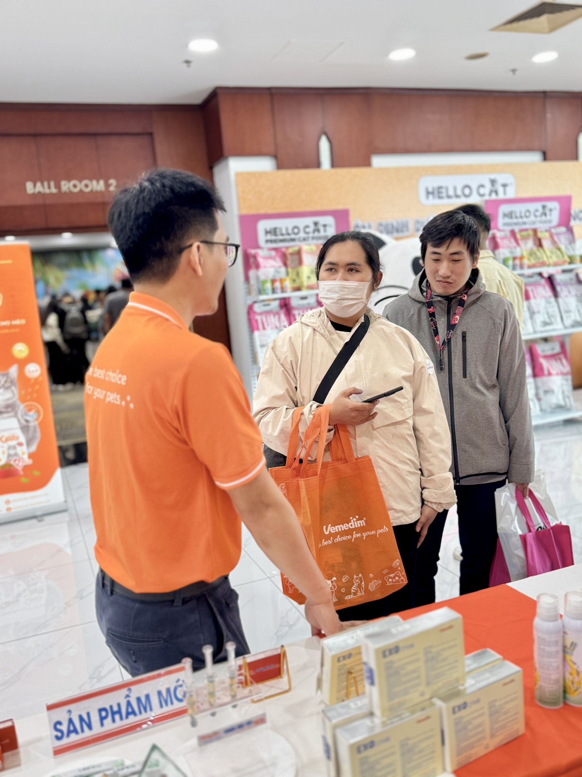 Tại gian hàng, người nuôi mèo cũng được trải nghiệm sản phẩm miễn phí và nhận sự tư vấn tận tình từ đội ngũ chuyên môn.